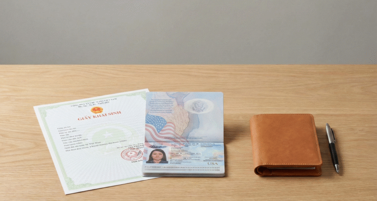 – Hồ sơ bao gồm: Đơn từ, bằng chứng quốc tịch của con, và quan trọng nhất là Giấy khai sinh của con để chứng minh mối quan hệ huyết thống với cha mẹ.